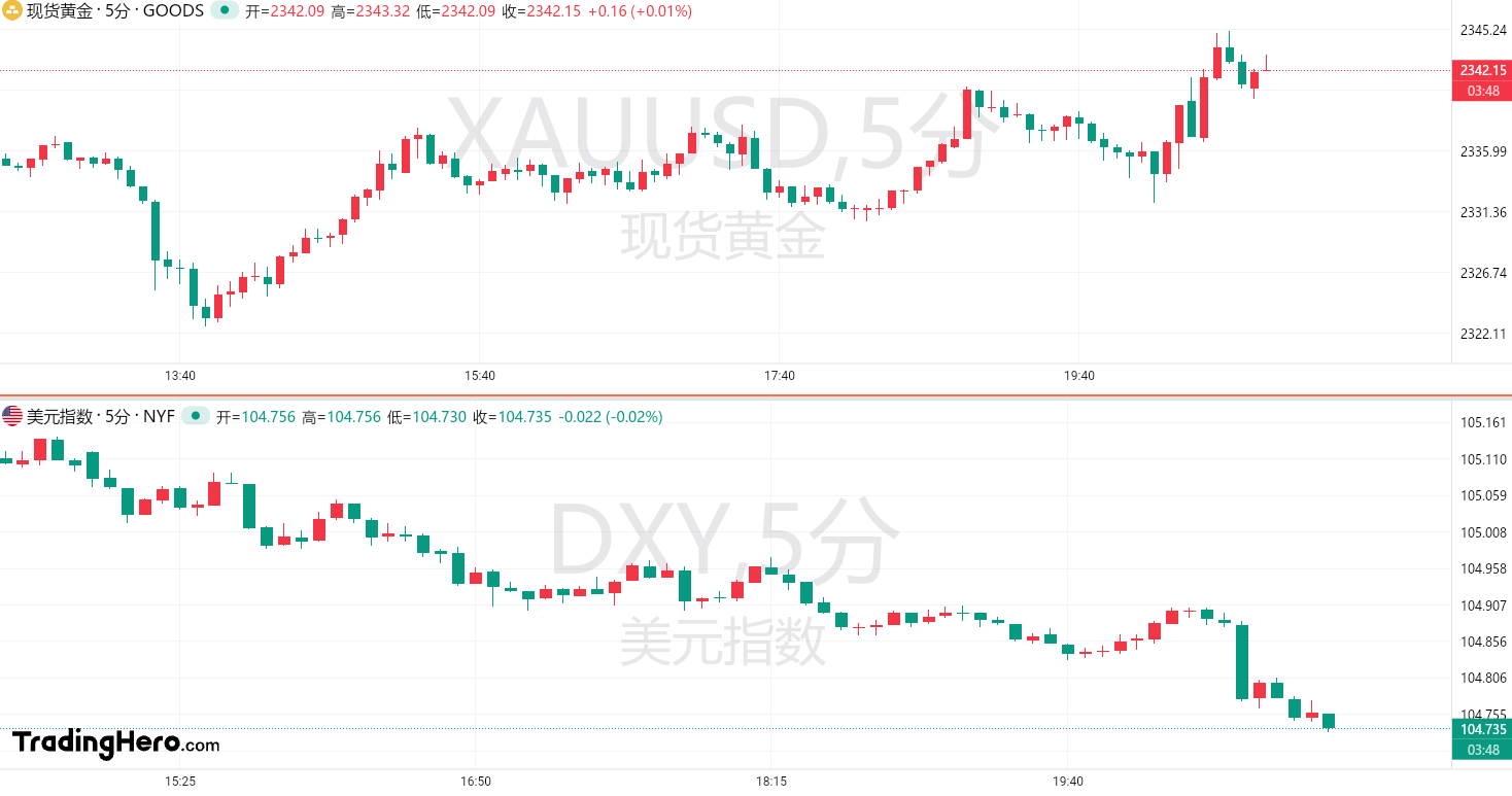 数据公布后,黄金小幅上涨、美元指数在昨日创下一个月以来最佳单日表现后继续回落。