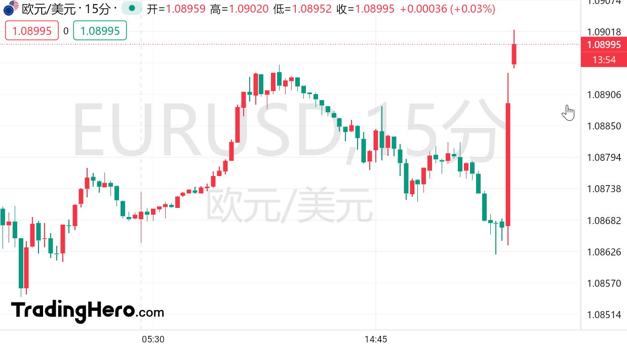 欧洲央行利率决议公布后,欧元兑美元短线上扬,收复日内全部跌幅,触及1.09。货币市场此前已经充分消化了该央行在6月份会议上降息25个基点的预期。