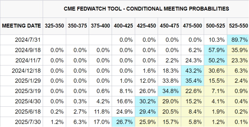 美国上周初请失业金人数录得23.8万人,超过预期的23.5万人,与上周相比变化不大。同时5月份美国新屋开工量下降5.5%,为四年来的最低水平。 FEDWATCH显示,美联储9月降息25个基点的预期为57.9%,年底利率可能降至5%。