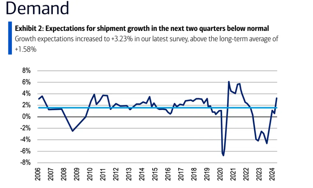 尽管他承认,这一增长很大程度上来自通胀,但美国银行的调查显示,需求预期也在发挥作用。