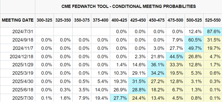 FEDWATCH显示,美联储9月降息25个基点的预期为60.5%,年底利率可能降至5%。