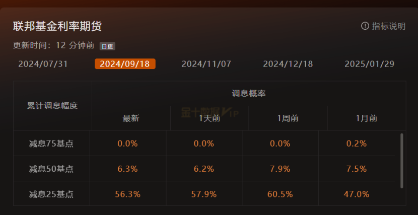 FEDWATCH显示,美联储9月降息25个基点的预期为56.3%,年底利率可能降至5%。