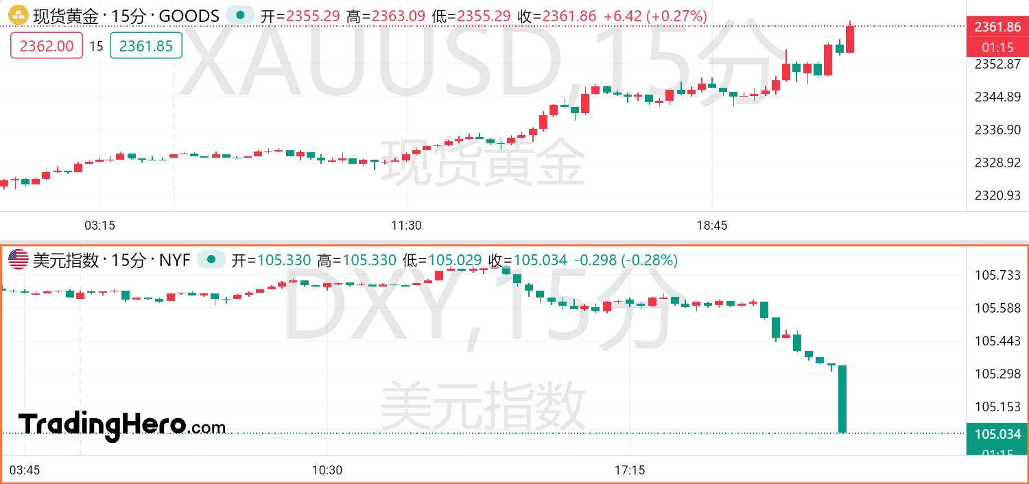 数据公布后,黄金突破2350美元大关,为6月21日来首次,日内涨幅达到1%;白银日内大涨超3%;美元指数短线跌近20点。随后因美国6月ISM非制造业PMI大幅低于预期,现货黄金站上2360美元。