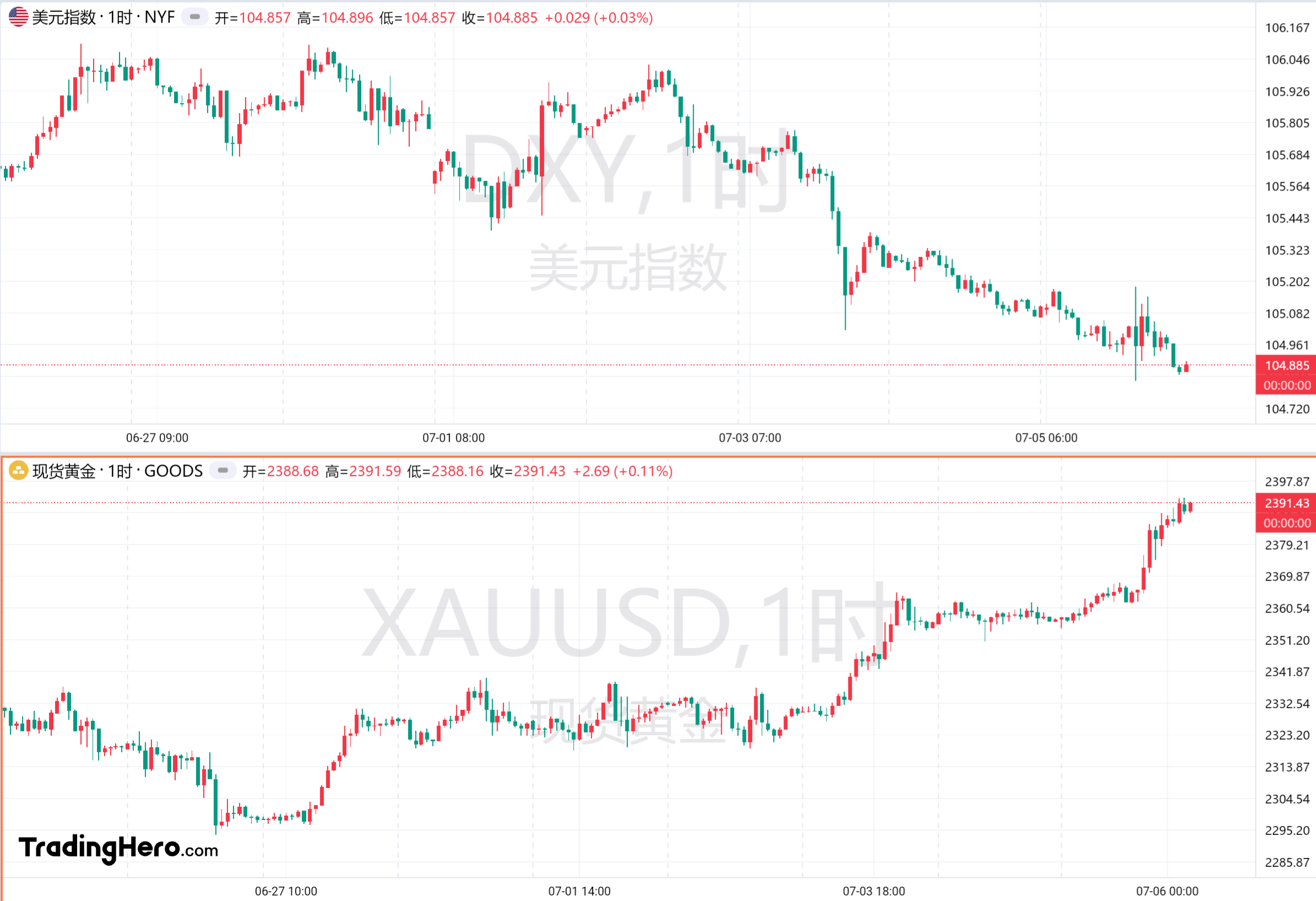 现货黄金则成功受到美元和美债收益率下行的提振,本周持续走高。周五非农后黄金坐上过山车、上演“天地针”行情:短线重挫17美元、跌破2360美元关口后,又快速强势冲上2370美元。黄金随后涨势加速,本周收于2390上方,创五月底以来最高。