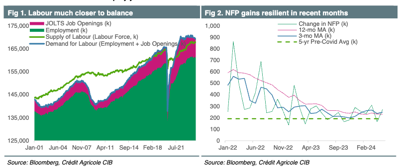 对于美联储来说,到目前为止的就业市场降温是一个积极的信号,因为它使劳动力供需关系得到了更好的平衡。目前,劳动力市场的软化程度尚不足以促使立即采取行动,因此重点仍在通胀问题上,该行认为6月的就业报告不会改变这一点。